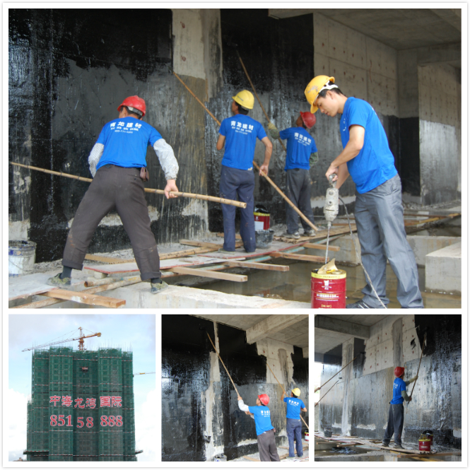 龙湾国际项目防水面积达5万㎡,施工部位为地下室剪力墙与顶板,采用了cq9电子官网入口911聚氨酯防水涂料(CQ107)与聚乙烯丙纶,由于连续降雨,地下室长期处于浸水状态,给施工带来了一定难度,但cq9电子官网入口人认真对待每一施工细节,保证工期内圆满完成,目前地下室防水已经接近尾声,获得了甲方的一致认可。
