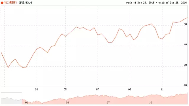 数据显示,11月上旬开始,WTI从11月初的45.69美元/桶持续拉升至11月底的51.68美元/桶。