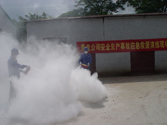 消防安全知识教育后,还对一线员工组织进行了油盆灭火技能培训。在指导员的指导下,他们亲手拿起灭火器扑灭演示的油盆火,培训收到良好的效果。