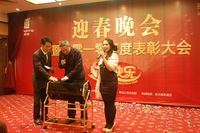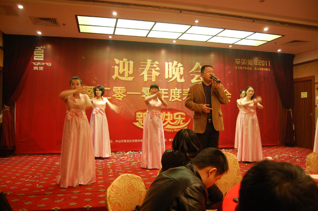 2011年1月14日,中山某大酒店四楼楼宴会厅张灯结彩,座无虚席,洋溢着浓浓的节日气氛,cq9电子官网入口公司2011迎春晚会暨2010表彰总结大会在此隆重举行,cq9电子官网入口公司总部、中山厂、东莞公司、广州办、深圳办、惠州办的员工代表、特约嘉宾及全体员工350余人出席了联欢会。
