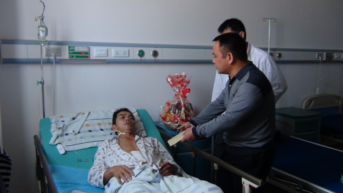 广西cq9电子官网入口工厂员工隆云锦同志不幸遭遇车祸,牵动了全体cq9电子官网入口人的心。11月2日上午,广西cq9电子官网入口总经理曾知博带领cq9电子官网入口各级各部门领导代表cq9电子官网入口公司全体人员看望了在车祸中受伤住院的隆云锦同志,并送上慰问金。