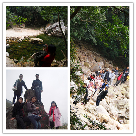 广西cq9电子官网入口成员在cq9电子官网入口公司总经理曾知博的带领下,逆水而上。走了大约半小时,我们到了一个景点“天女浴池”。这天女浴池是圆形的,由两块呈弧形的大石头围成半圆的“石墙”,池里的水清澈见底。接着走了约半个多小时,到了另一个景点“人间仙境”, 清清的河水在大石头的缝隙间流淌,河两岸的古树长出长长的枝杆,大家抢着在这如画般的美景中拍照留念,如痴如醉地尽情享受着这来自大自然的美景。
