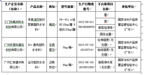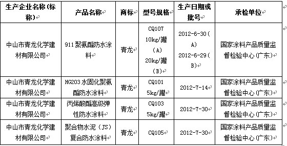 近日,广东省质量技术监督局对广州深圳、东莞、中山、江门、顺德等6个地区22家企业生产的防水涂料产品共32批次进行抽查,合格率为90.6%。其中共抽查了cq9电子官网入口公司生产的4批次产品,全部合格。