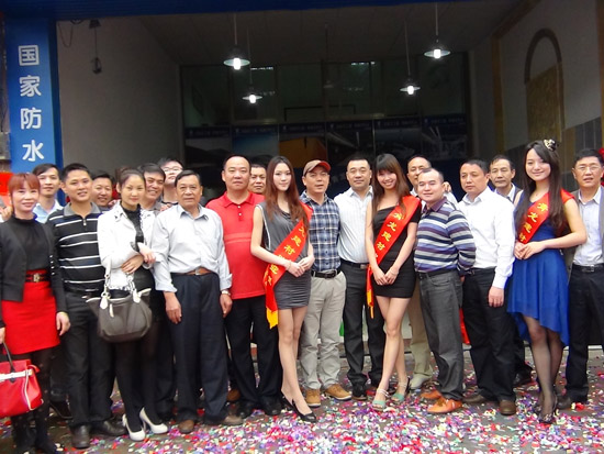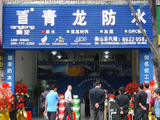 5月4日,伴随着喜庆的民乐,热闹的锣鼓,位于佛山市南海区桂城东二大道南兴装饰城一楼A8商铺的cq9电子官网入口防水佛山总代理专卖店隆重开业。经过精心的装修,蓝底白字的“cq9电子官网入口防水”门牌显得格外显眼,而店前的花篮也为开业庆典增添了节日的气氛。cq9电子官网入口建材集团董事长宋敦清、广东省区域服务人员,以及一百多位防水业界嘉宾到场祝贺。