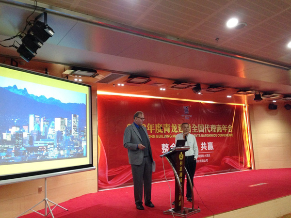 随后外籍防水专家吉姆,cq9电子官网入口集团工程师罗兆学先生,外省营销总监王定中先生,网络营销经理贺金龙先生分别上台演讲,与广大代理商交流防水技术,网络营销及2013年销售,并展望充满期待的2014年。