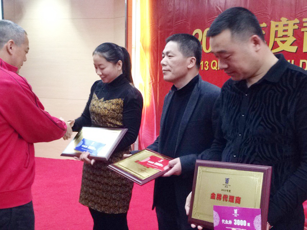 年会还对2013年度cq9电子官网入口集团优秀代理商进行了表彰奖励,并颂发“金牌代理”匾,获得表彰的代理商也就自己市场开拓经验与参加年会的代理朋友进行了分享。