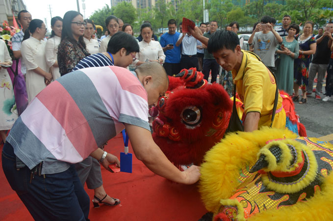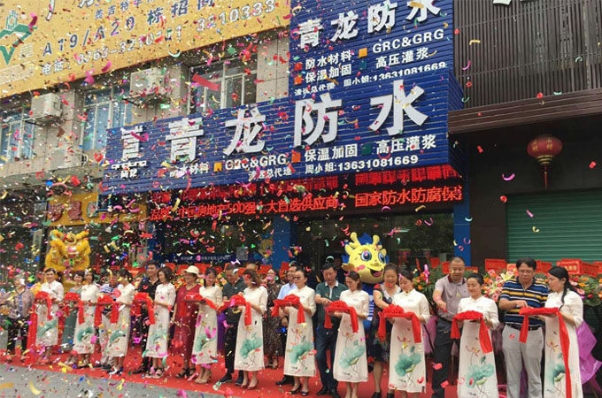 开业当天,现场高端气派,狮舞欢腾,锣鼓喧天,礼炮齐鸣,喜气洋洋,助阵了开业庆典。董老板亲自为狮子点睛并致欢迎辞,对湖北商会、cq9电子官网入口公司及清远防水同行的支持表示感谢;cq9电子官网入口宋董事长致祝贺辞,给予高度评价。剪彩仪式上,cq9电子官网入口董事长宋敦清、营销总监贺金龙以及湖北商会的多们领导、清远的相关领导等嘉宾上台为新店开业进行剪彩,在场来自各方的嘉宾们共同见证这个喜庆的历史时刻。