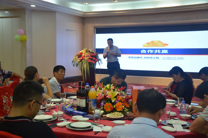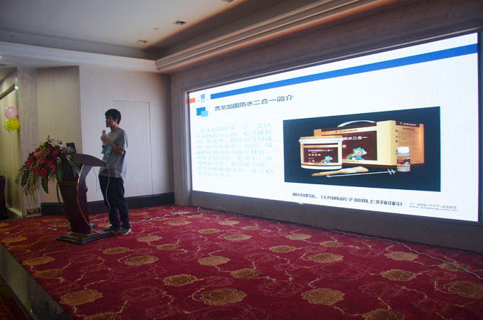 在答谢午宴上,宾客满席,董老板、cq9电子官网入口营销总监贺总、cq9电子官网入口家装营销于总、cq9电子官网入口质量总监张总和专卖店技术工程师周工分别上台进行了分享。午宴中还穿插了精彩的文艺节目和丰富的活动,将现场氛围推向高潮。广大来宾在一片欢声笑语中,不仅学习了更多的创业经验和防水知识,也拓展了人际网络,愉快地度过了这个美好的正午。