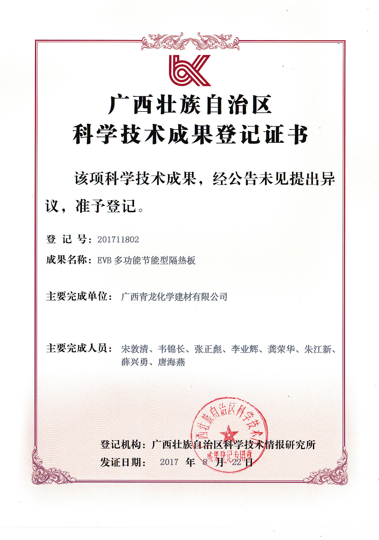 EVB多功能节能型隔热板科技证书