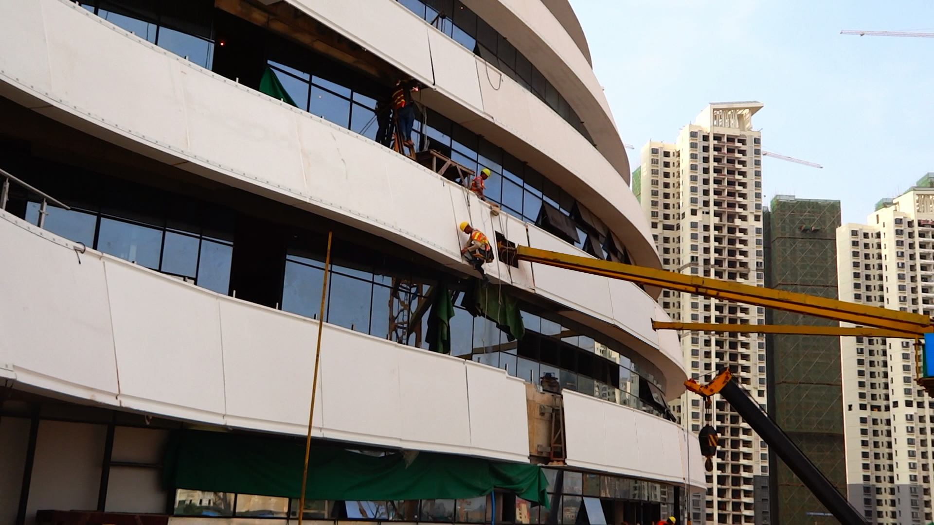 cq9电子官网入口公司作为国内GRC领域的知名企业,承接了新媒体中心三座主体结构的双曲面外墙板项目。由于所有的面板没有一片完全相同,不仅要经受高空风雨的侵蚀,相邻两块更要紧密榫合,天衣无缝,并在整体上形成流线性美感,因此需要制作大量的模具,工程极为繁琐。但cq9电子官网入口GRC团队克服重重困难,从图纸深化设计、彩色GRC选材、造型产品生产到安装施工等一系列工序中都做到极致,让甲方和监理都非常满意。