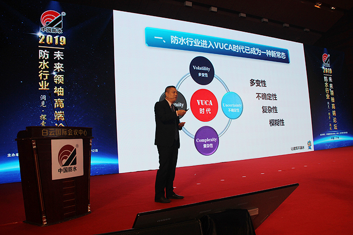 所以我在这里用VUCA这四个字母来表示我们防水行业一种新的快速多变的商业格局,这是我个人的一点看法。