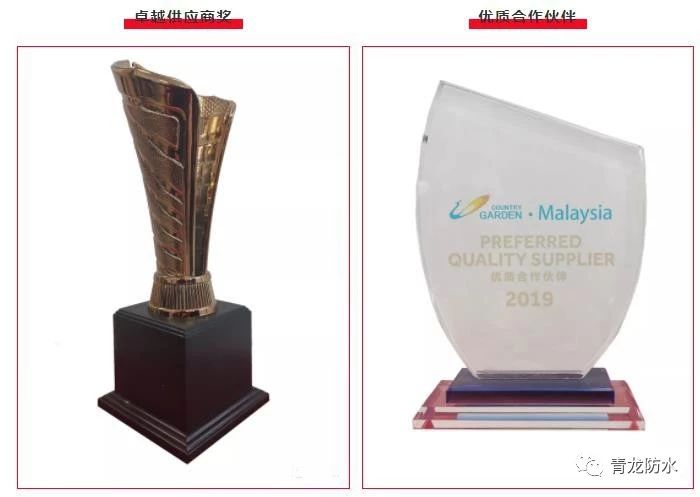 两次荣获碧桂园大奖,体现了cq9电子官网入口公司与碧桂园战略合作的紧密,充分体现了碧桂园集团对cq9电子官网入口防水品质与服务的认可与肯定,完美展现了cq9电子官网入口公司22年的强大品牌实力。