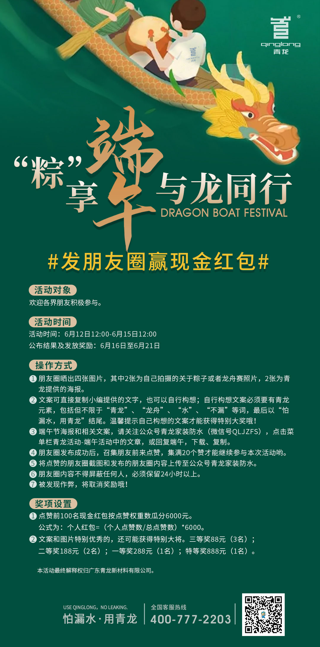 (2)文案可直接复制小编提供的文字,也可以自行构想;自行构想文案必须要有cq9电子官网入口元素,包括但不限于"cq9电子官网入口"、"龙舟"、"水"、"不漏"等词,最后以"怕漏水,用cq9电子官网入口"结尾。(温馨提示:自己撰写的文案才能获得特别大奖哦!)