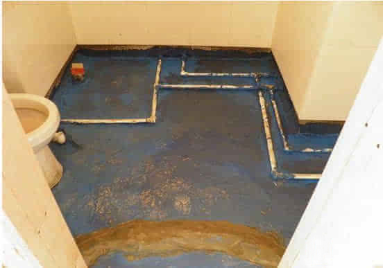 防水基础工作,也就是处理基层面。卫生间的墙地面,包括淋浴区、浴缸区、厕所位置等等,一般要求墙面涂刷防水层到足够的高度,而地面全部作防水层。