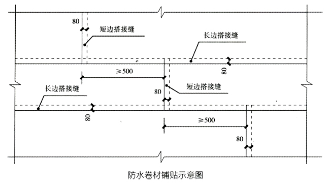常见问题现象 | 1、防水卷材搭接部位不严密,搭接宽度不符合要求。 2、防水卷材表面皱折和翘边 |