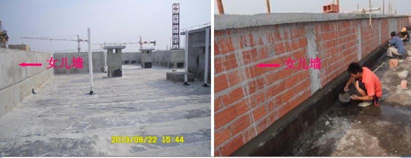 9、女儿墙:指的是建筑物屋顶外围的矮墙,除了护栏作用外,还起到给平面防水层上翻收口,以避免防水层渗水或是屋顶雨水漫流。依建筑技术规则规定,女儿墙被视作栏杆的作用,如建筑物在10层楼以上高度不得小于1.2m,为避免业者刻意加高女儿墙,方便以后搭盖违建,亦规定高度最高不得超过1.5m。
