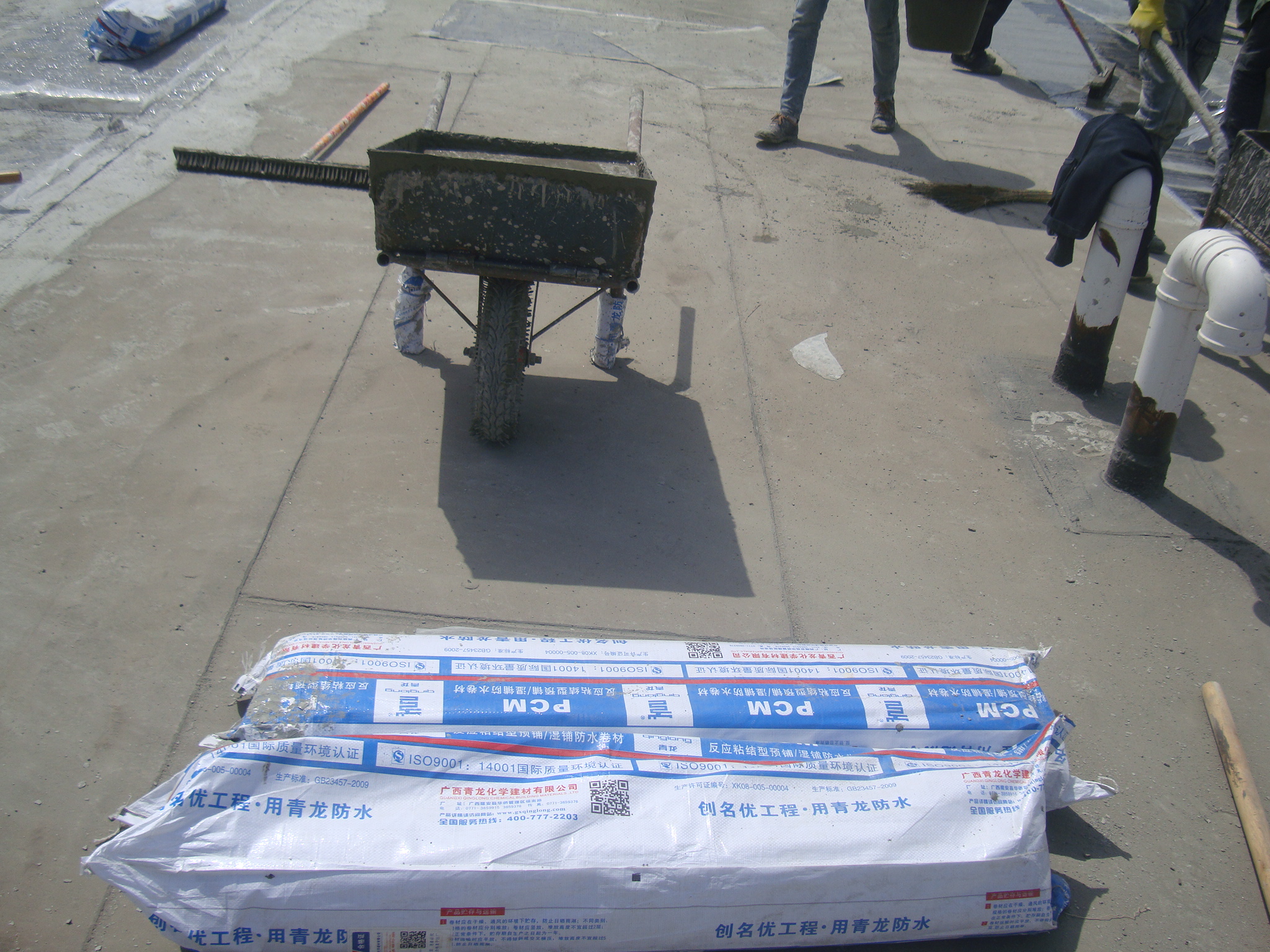 其厚度视基层平整情况而定,一般为2-3mm,过薄达不到最优的粘结效果,过厚则水泥浆堆积而开裂,刮涂时应注意压实,抹平。刮涂水泥浆的宽度要比卷材的宽度长,刮涂过程中要注意保证平整度。