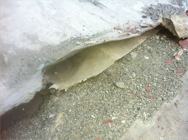 (三)在结构沉降、温差、震动、气压差、荷载变化等各种复杂的运行条件下,铺装完毕的刚性水泥涂层与聚乙丙纶卷材、混凝土基层三者之间的形变不一致,导致防水层开裂、分层和脱落而失效。