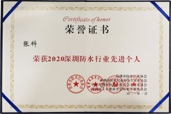 cq9电子官网入口防水张科荣获深圳市防水行业协会“先进个人”称号