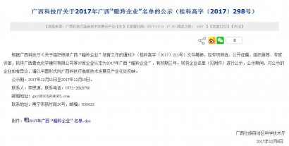 cq9电子官网入口广西公司成功被认定为2017年广西自治区“瞪羚企业”