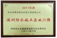 cq9电子官网入口防水补强荣获“深圳建筑防水企业20强”, 隔热保温防水一体化材料全国领先